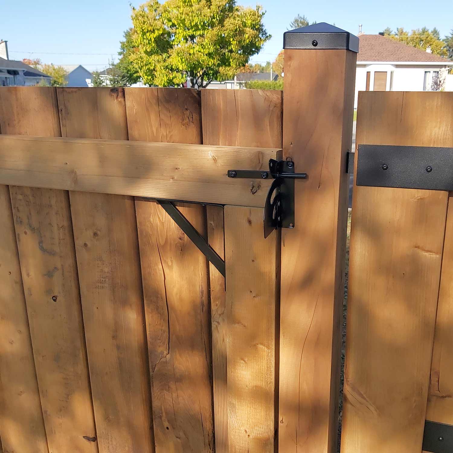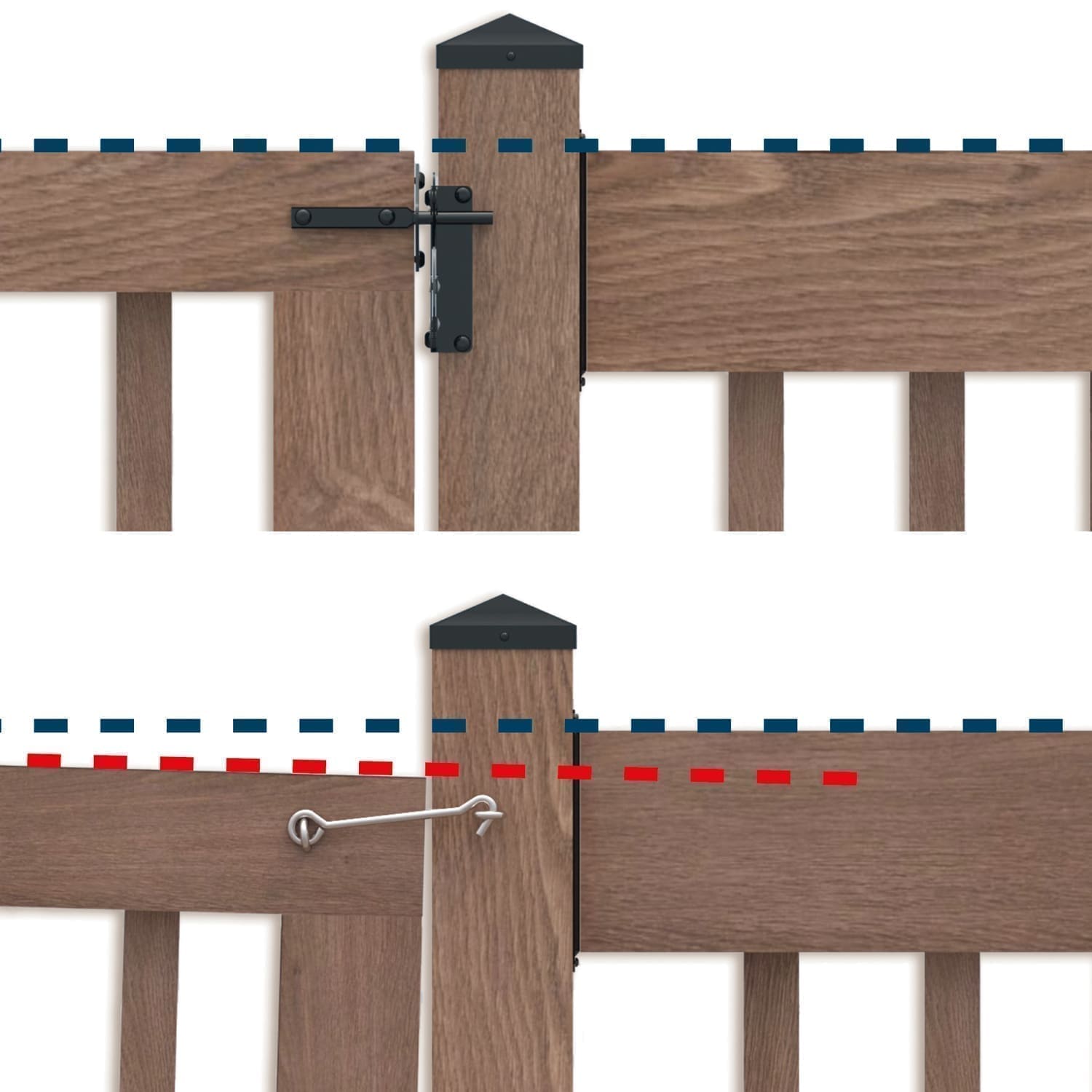 Simply screw the latch to the gate's closing post. You can also use the Gate Kit (11050) with this product. Our installation video will guide you through the installation of this self-leveling latch.