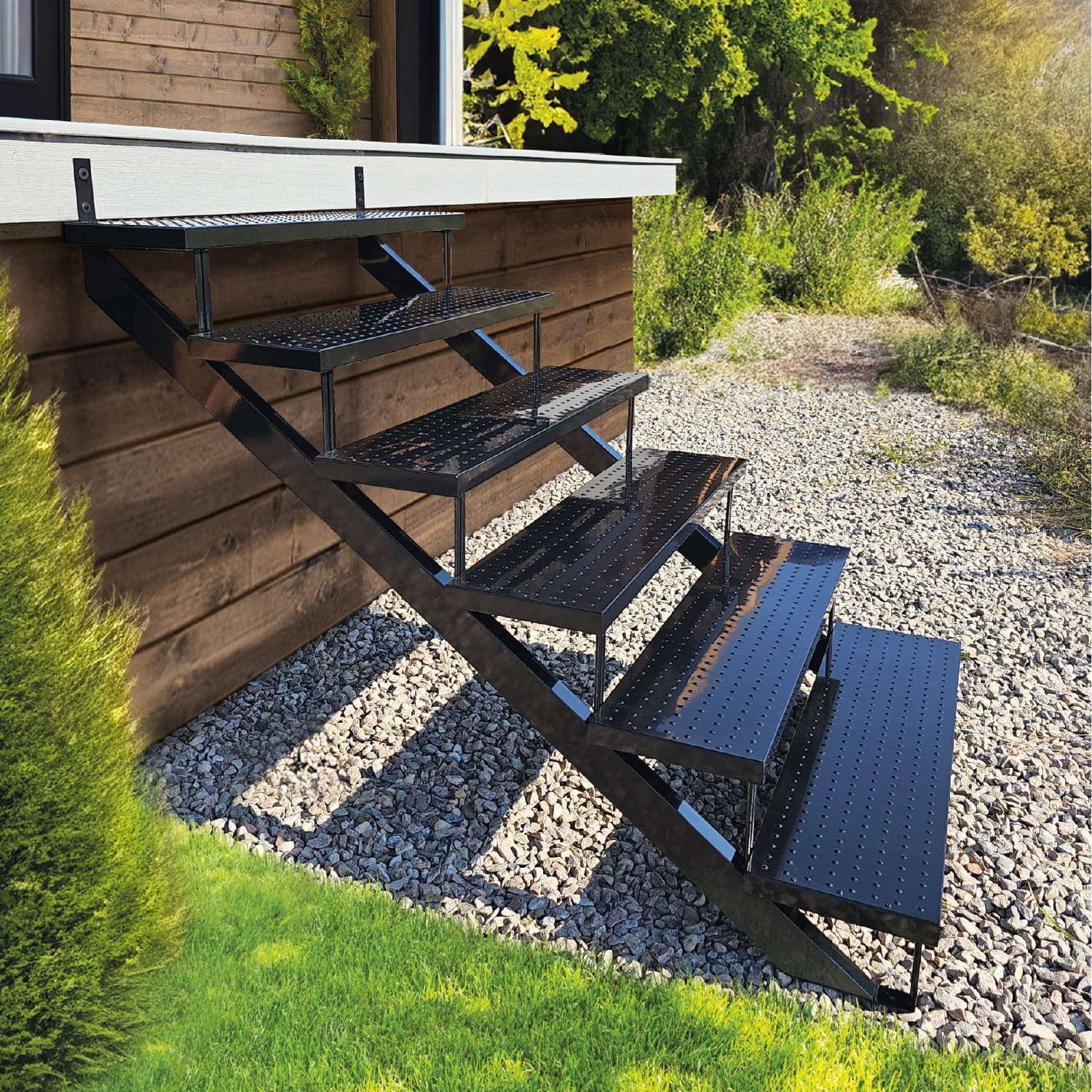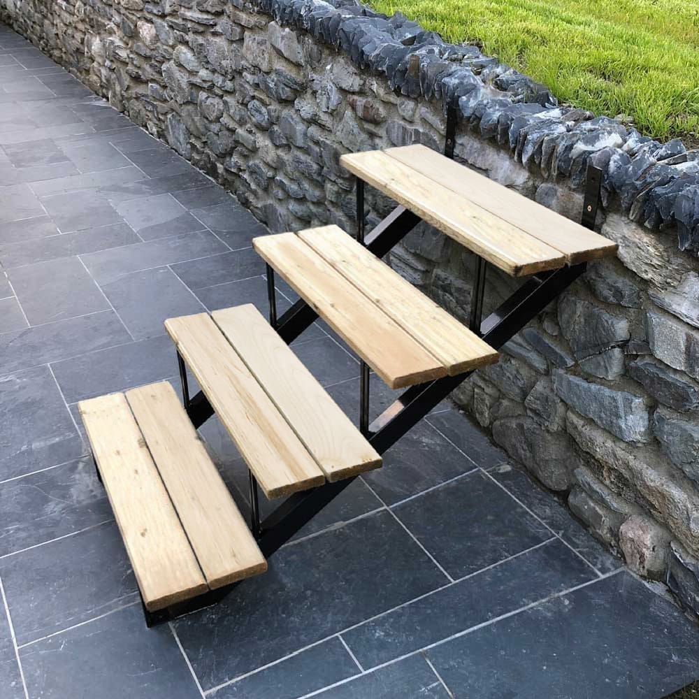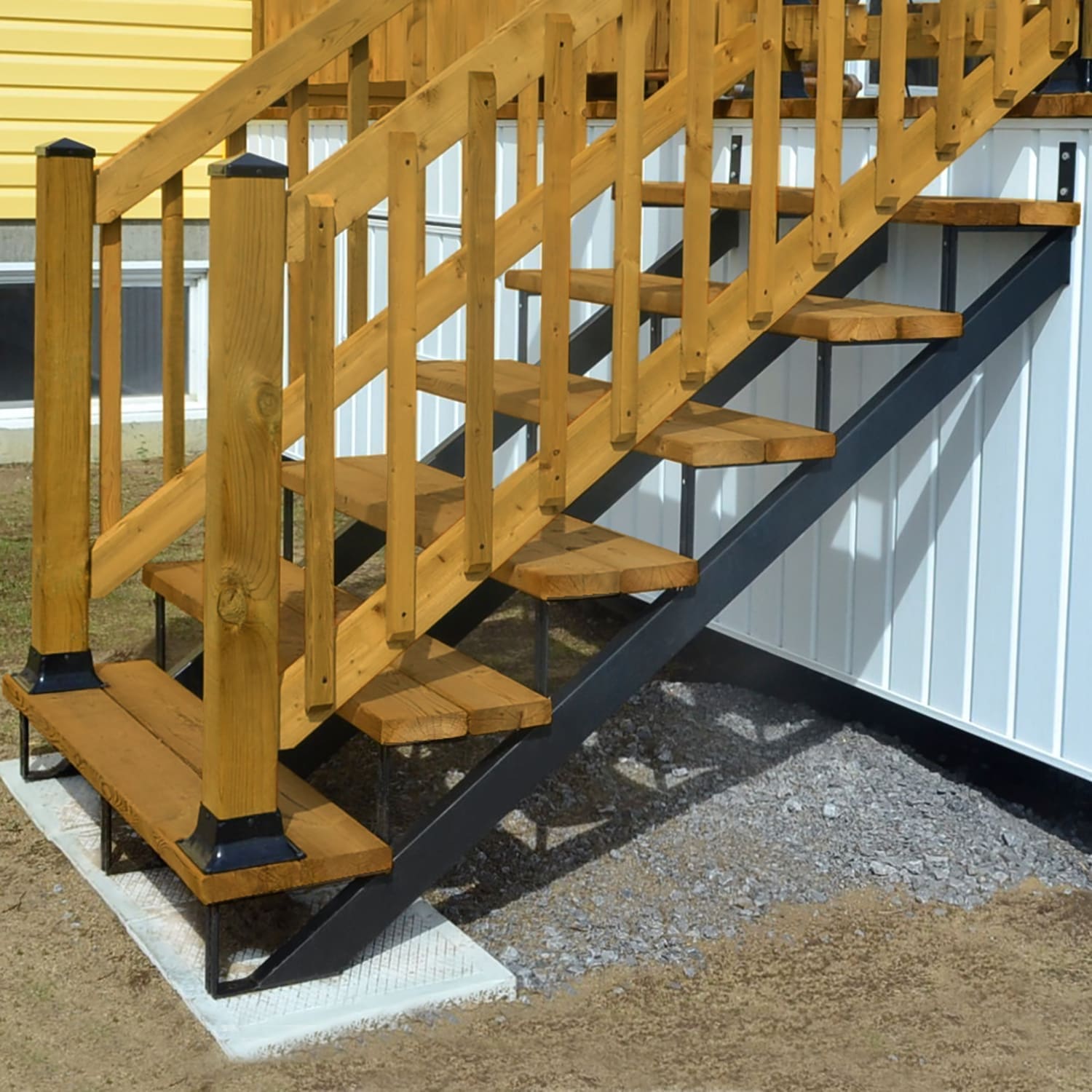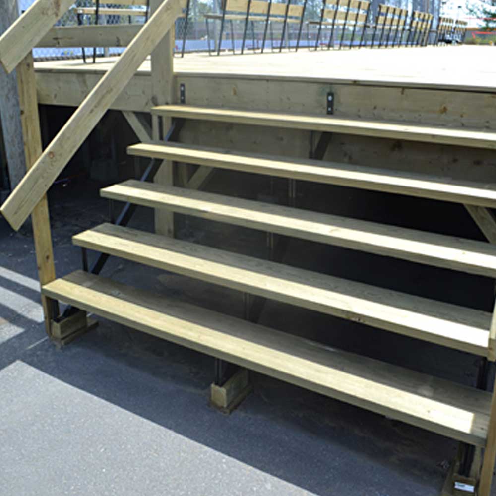 Vissez les marches aux limons, puis fixez ceux-ci au patio. Notre vidéo d’installation vous guidera dans la fabrication de votre escalier.