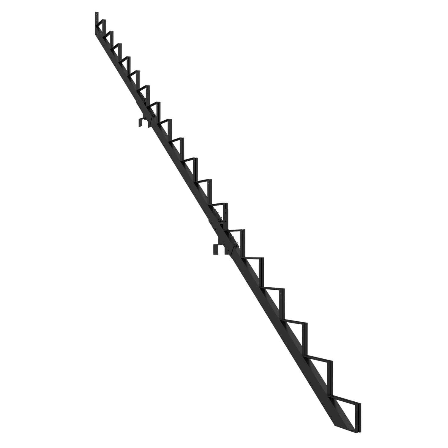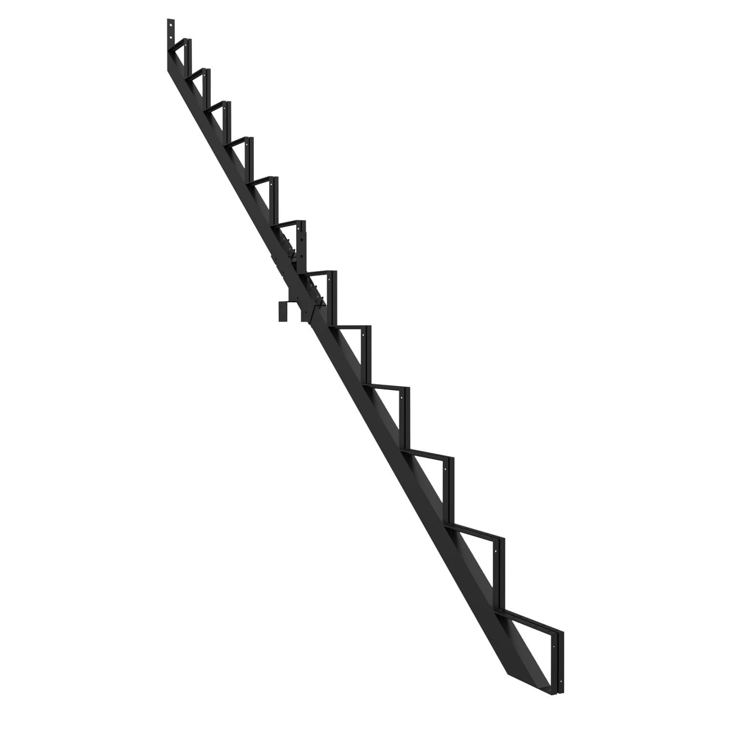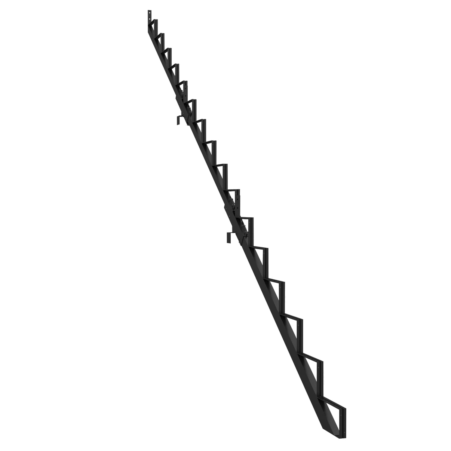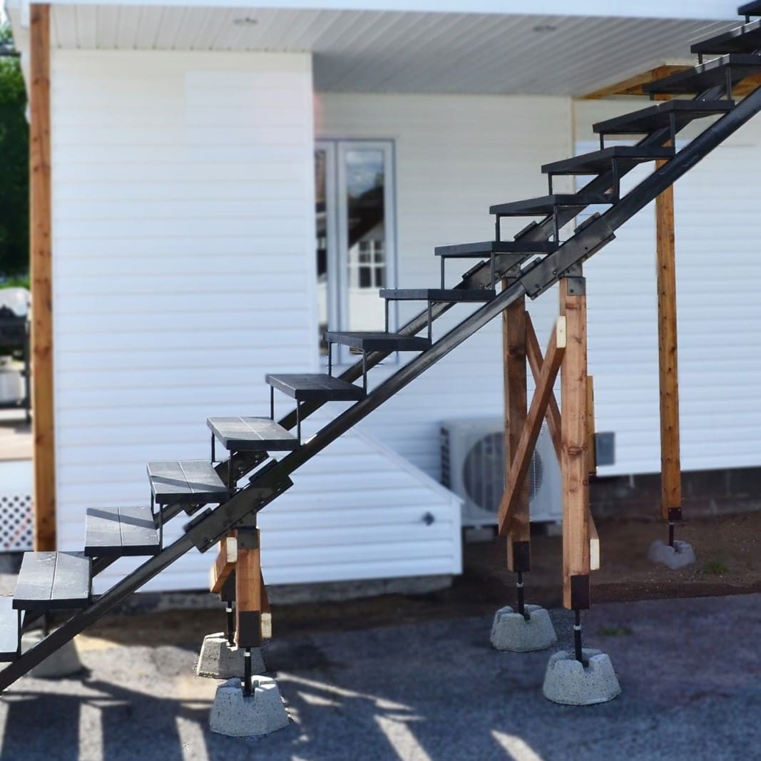 Ce limon vous permet de fabriquer un escalier très facilement. Pour ce faire, vous n’avez qu’à fixer aux limons des marches en acier Pylex, deux pièces de bois de 2 po x 6 po ou un 2 po x 12 po.