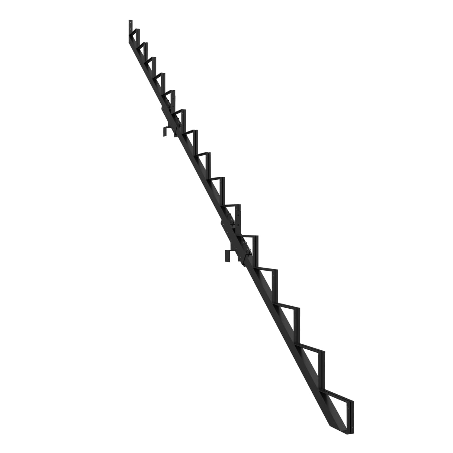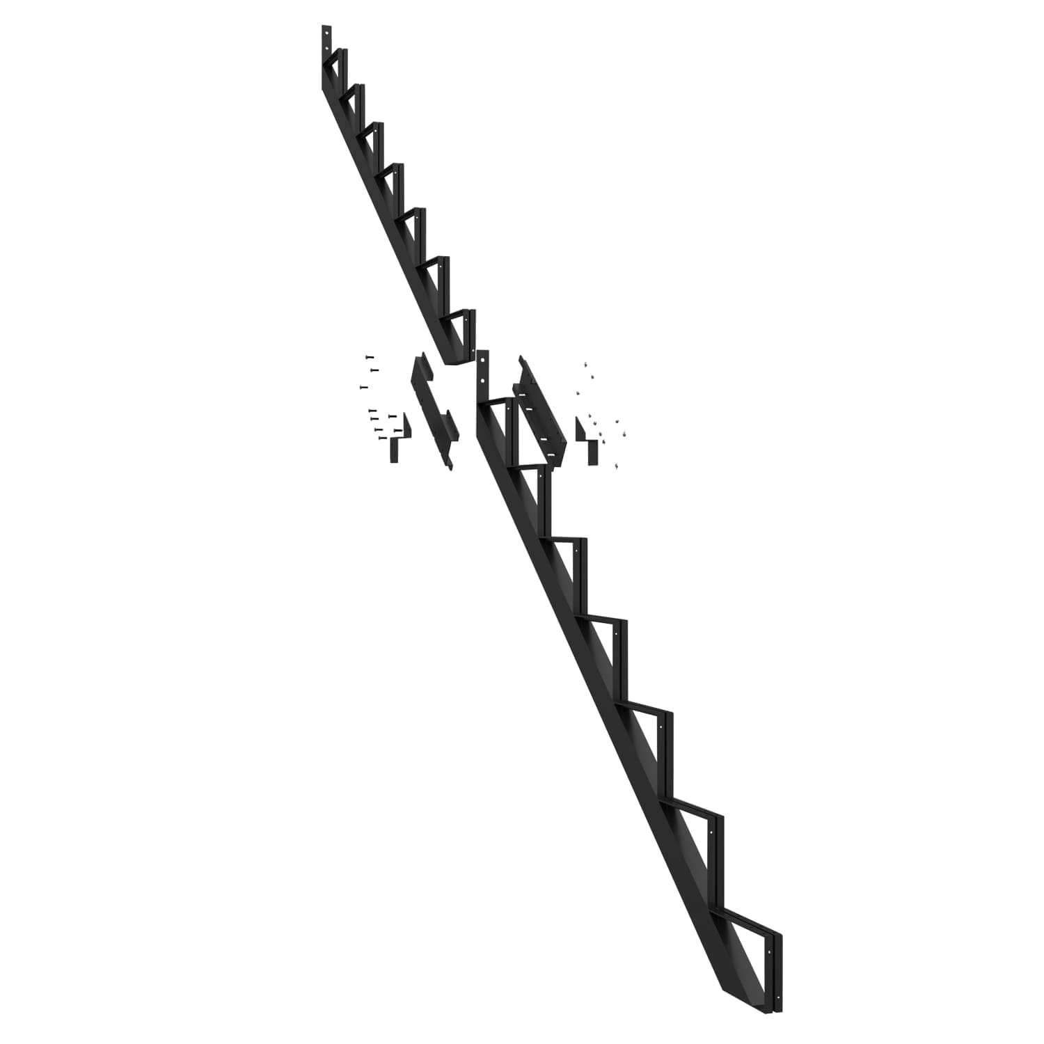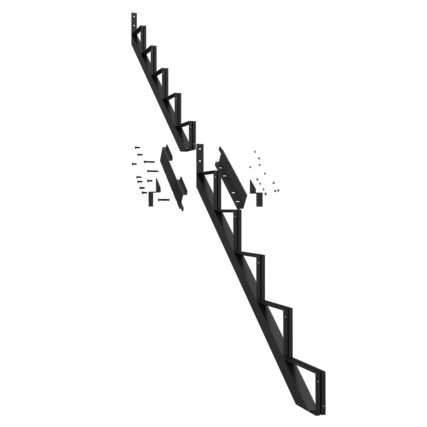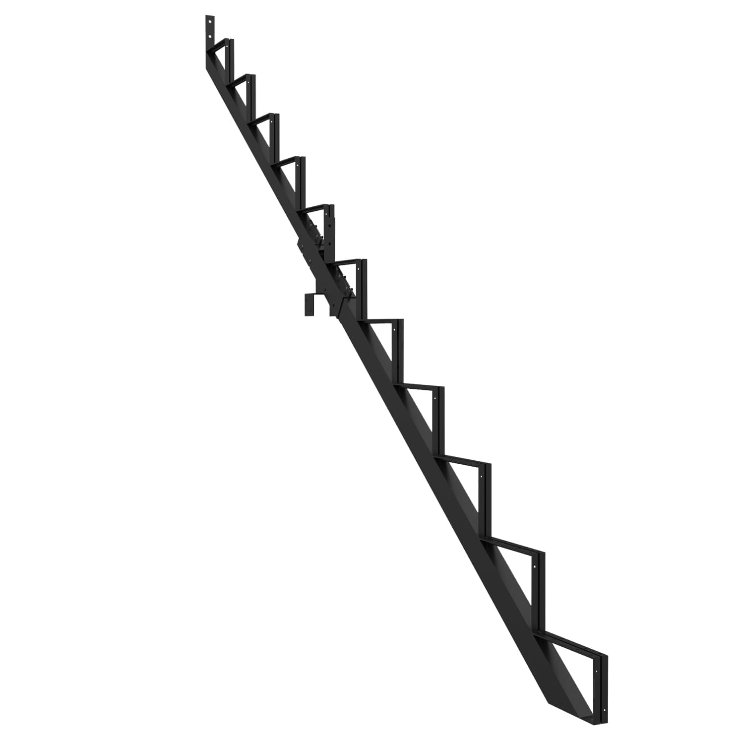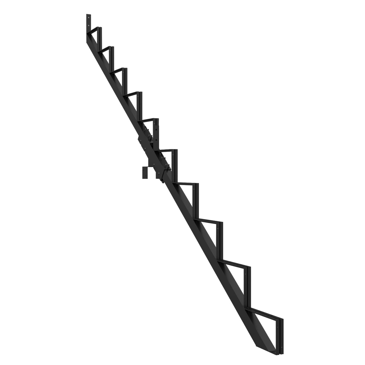 Ce limon vous permet de fabriquer un escalier très facilement. Pour ce faire, vous n’avez qu’à fixer aux limons des marches en acier Pylex, deux pièces de bois de 2 po x 6 po ou un 2 po x 12 po.