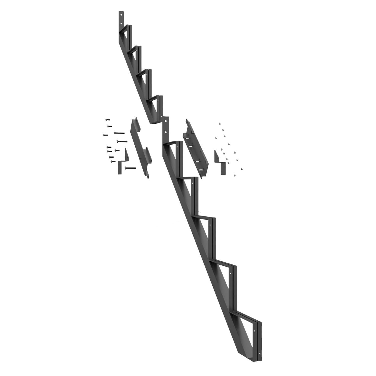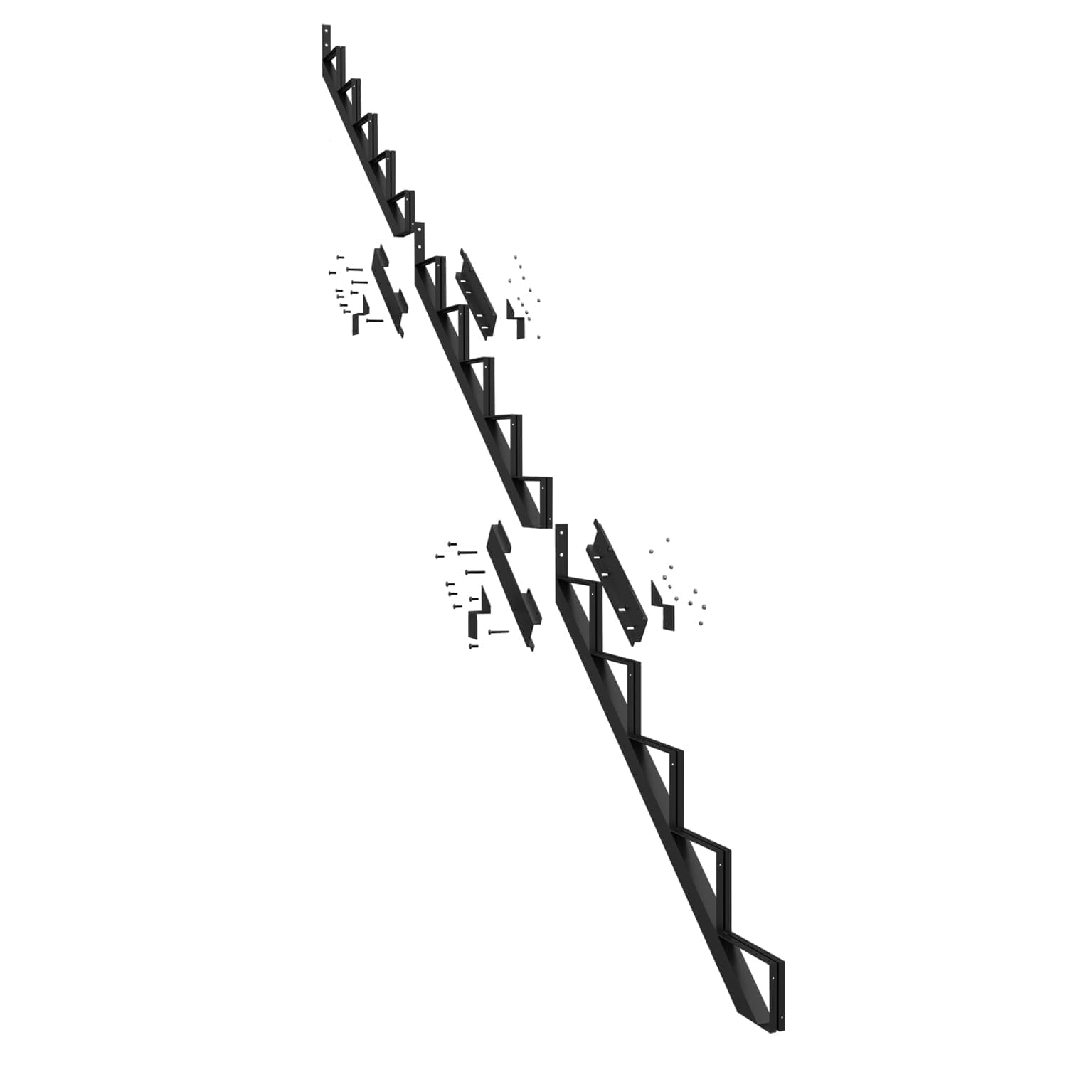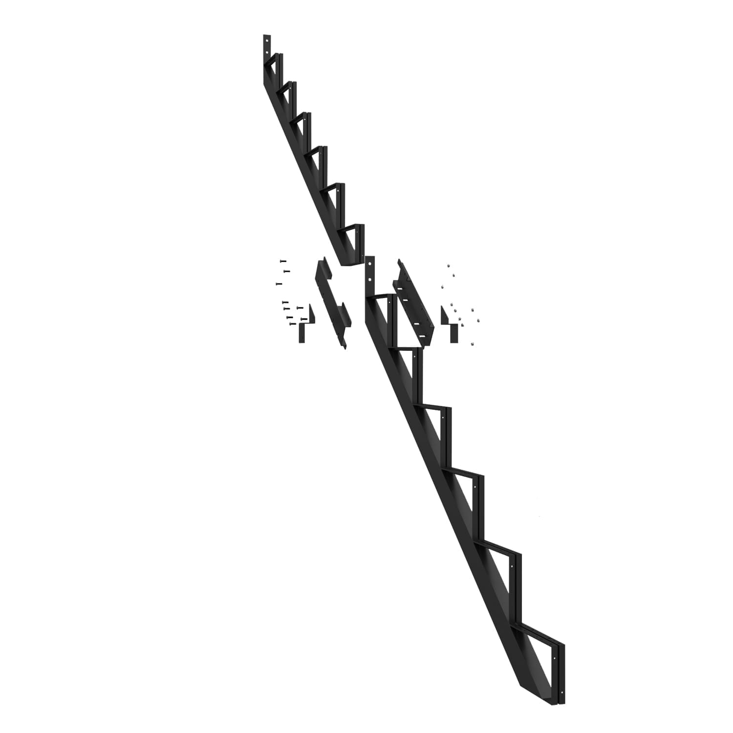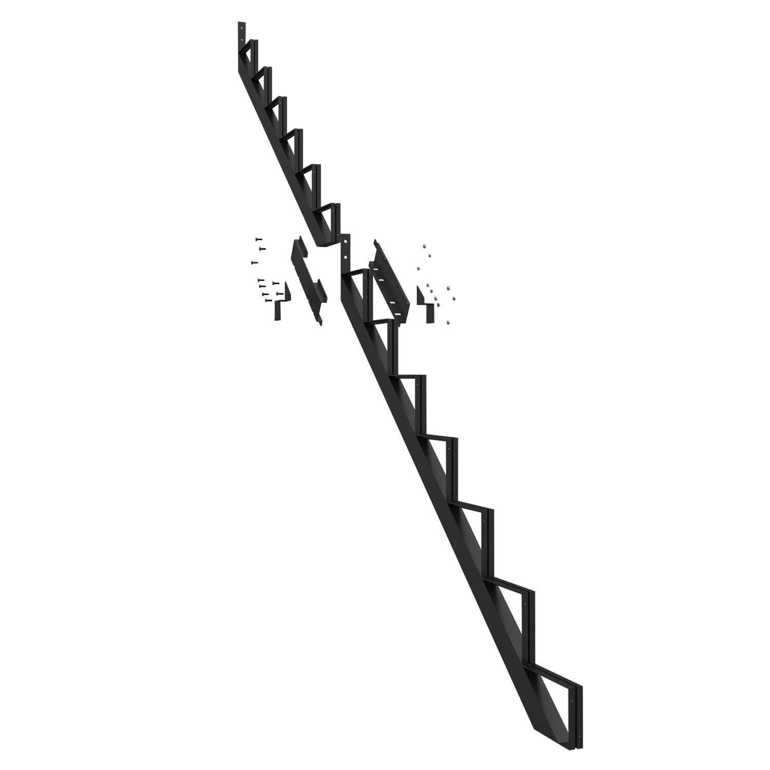 Ce limon vous permet de fabriquer un escalier très facilement. Pour ce faire, vous n’avez qu’à fixer aux limons des marches en acier Pylex, deux pièces de bois de 2 po x 6 po ou un 2 po x 12 po.