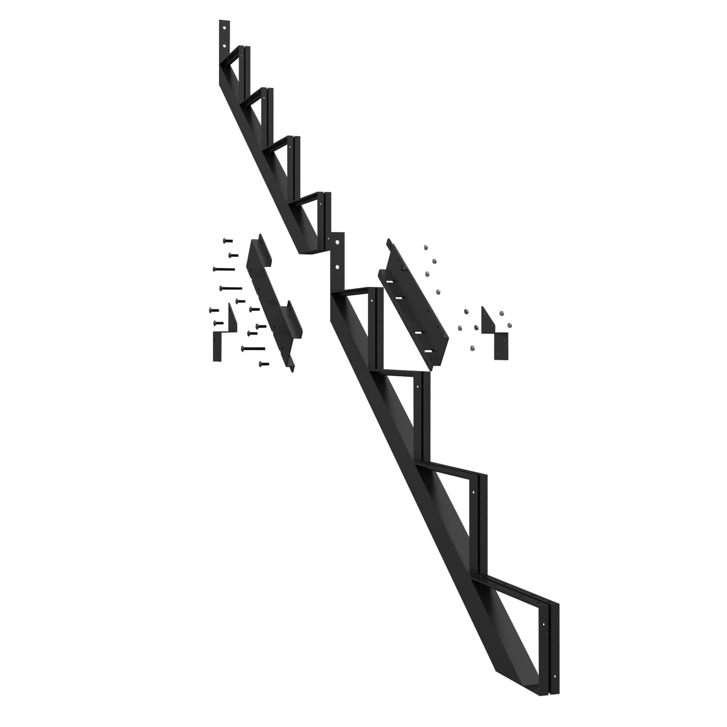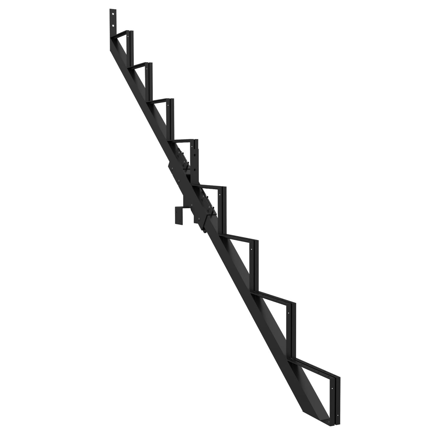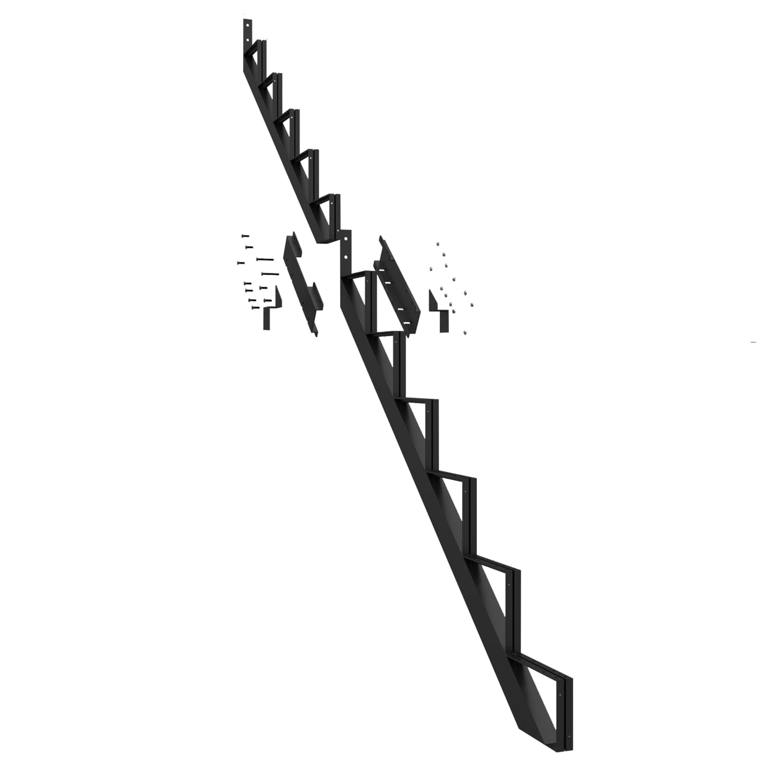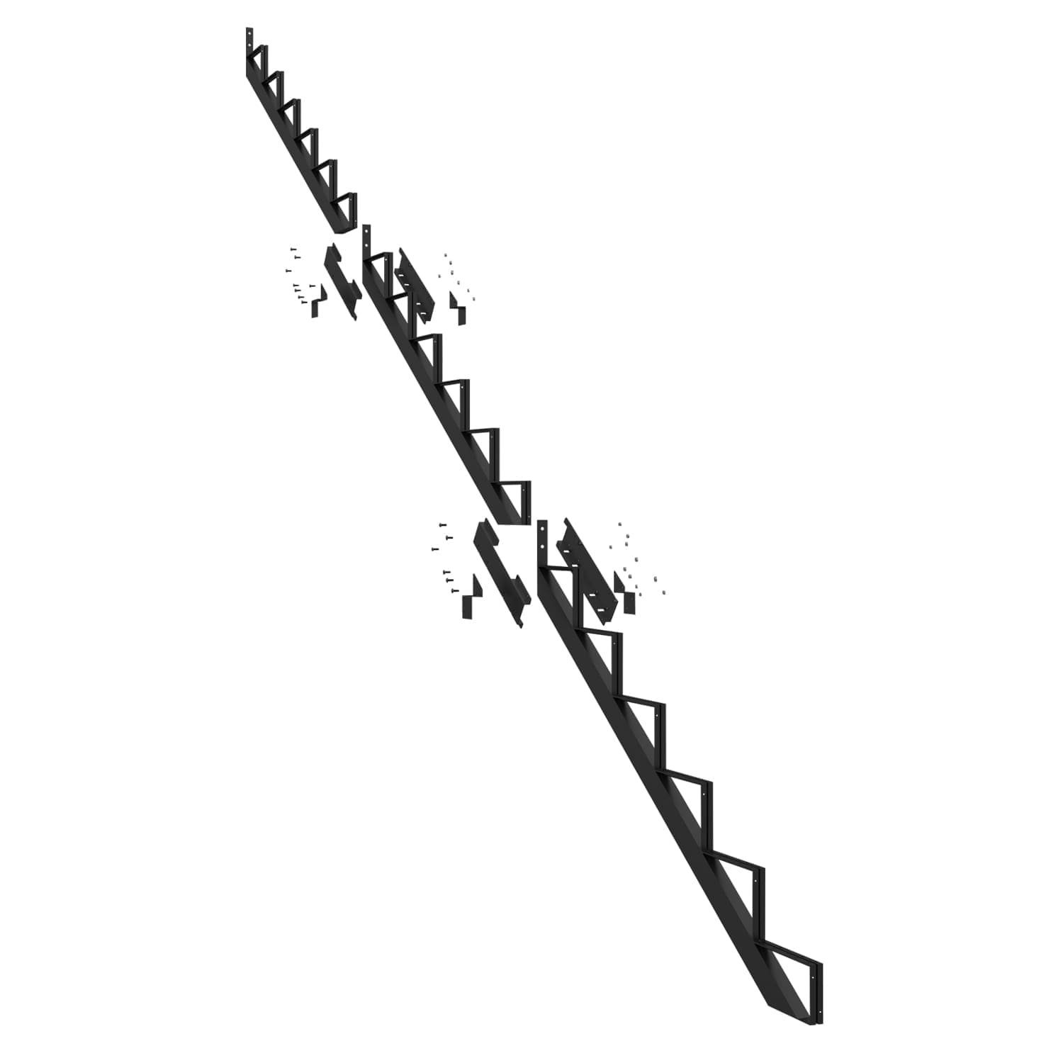 Ce limon vous permet de fabriquer un escalier très facilement. Pour ce faire, vous n’avez qu’à fixer aux limons des marches en acier Pylex, deux pièces de bois de 2 po x 6 po ou un 2 po x 12 po.