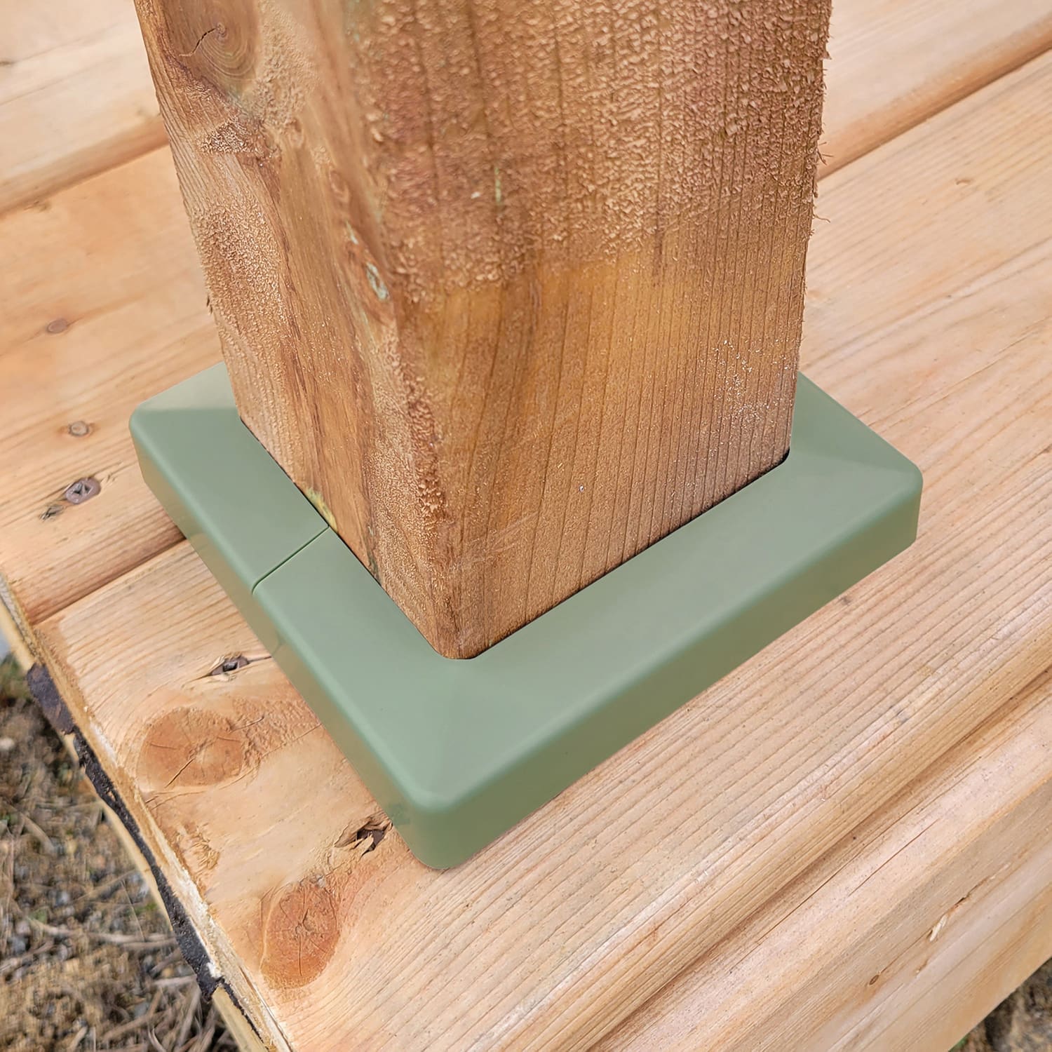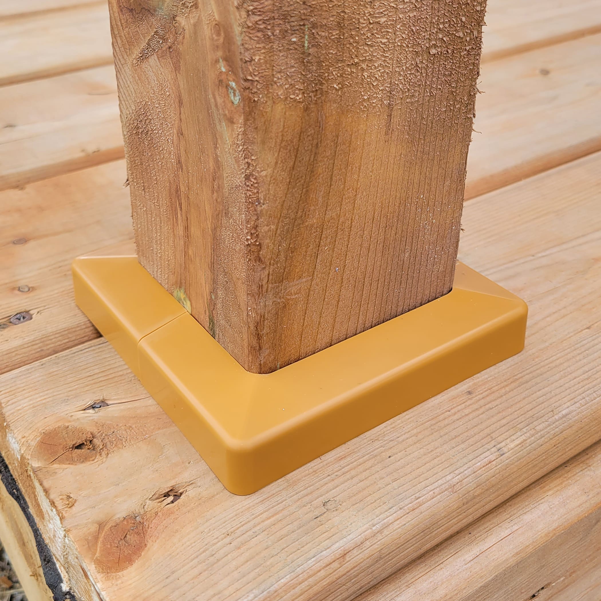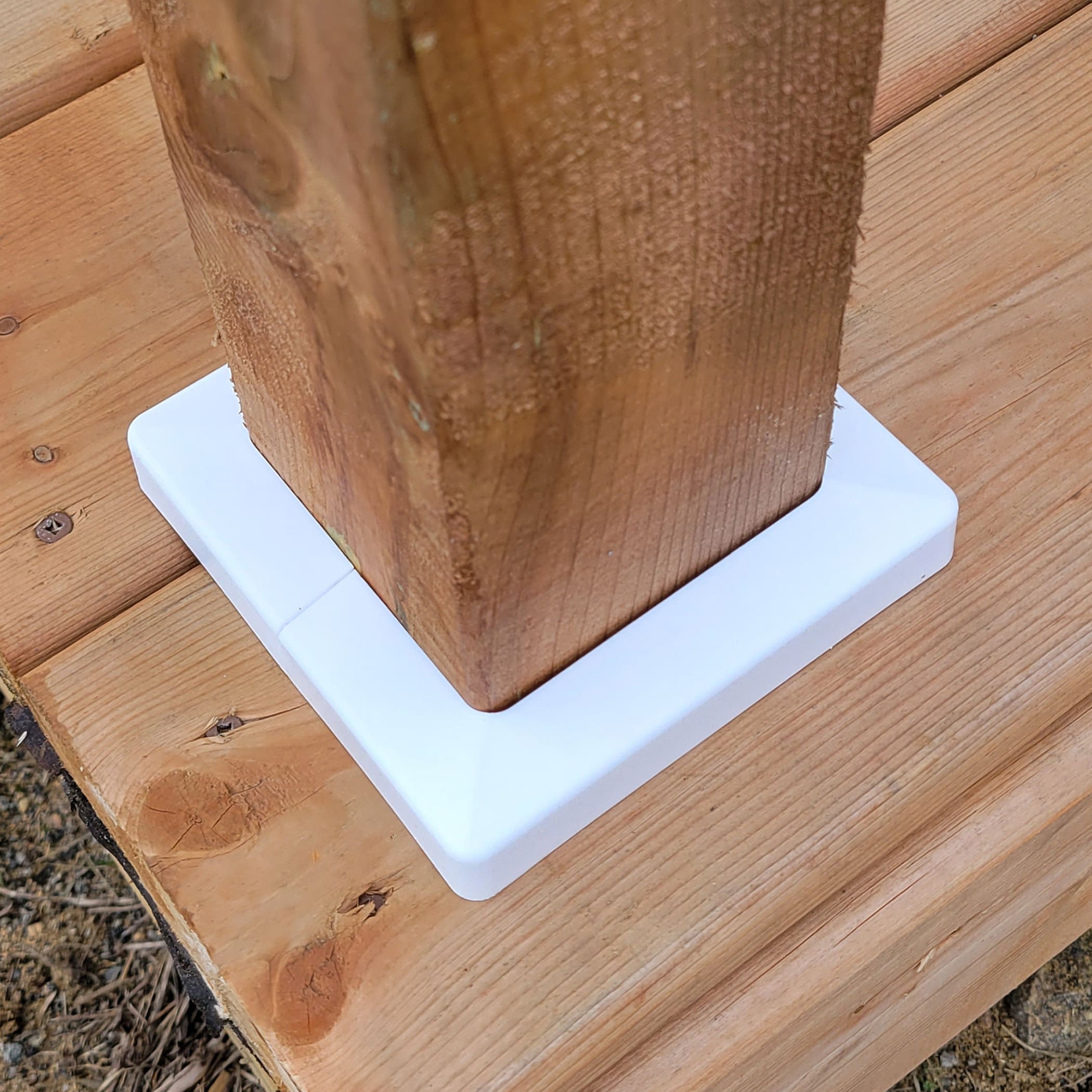 La Plakcap 44 s’installe facilement. Il suffit de séparer les deux pièces de la moulure et de les rassembler autour du poteau. Notre vidéo d’installation vous guidera dans la construction des rampes de votre patio.